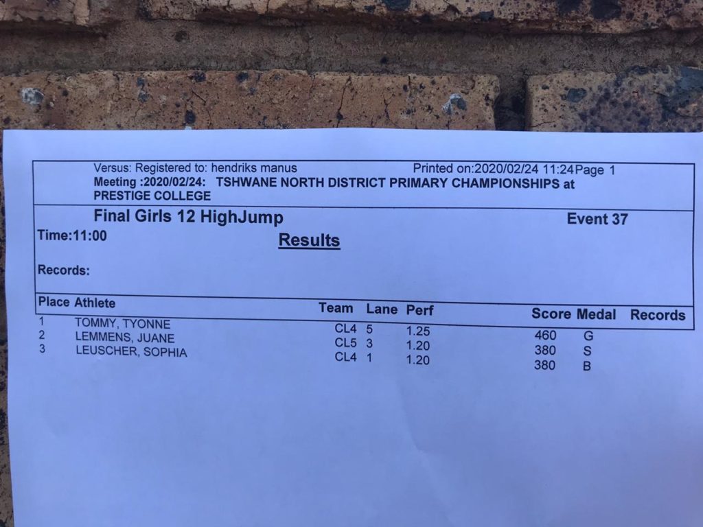 Tyonne Tommy came 1st in high jump at the athletics meeting held at Prestige Collage.